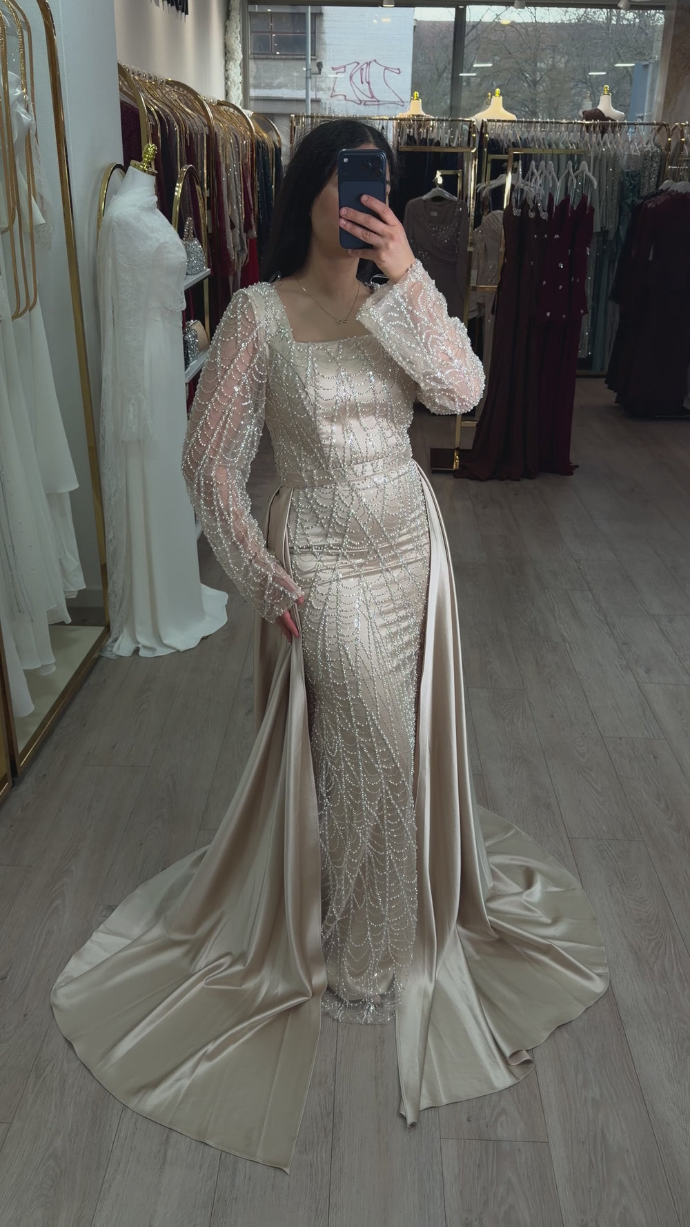 Erleben Sie pure Eleganz mit dem Yara Kleid. Die hochwertigen Perlenverzierungen machen dieses exklusive Abendkleid zu einem echten Hingucker. Schreiben Sie dabei bequem und stilvoll in diesem eleganten Kleid. Zeigen Sie Ihren besonderen Geschmack mit Yara.