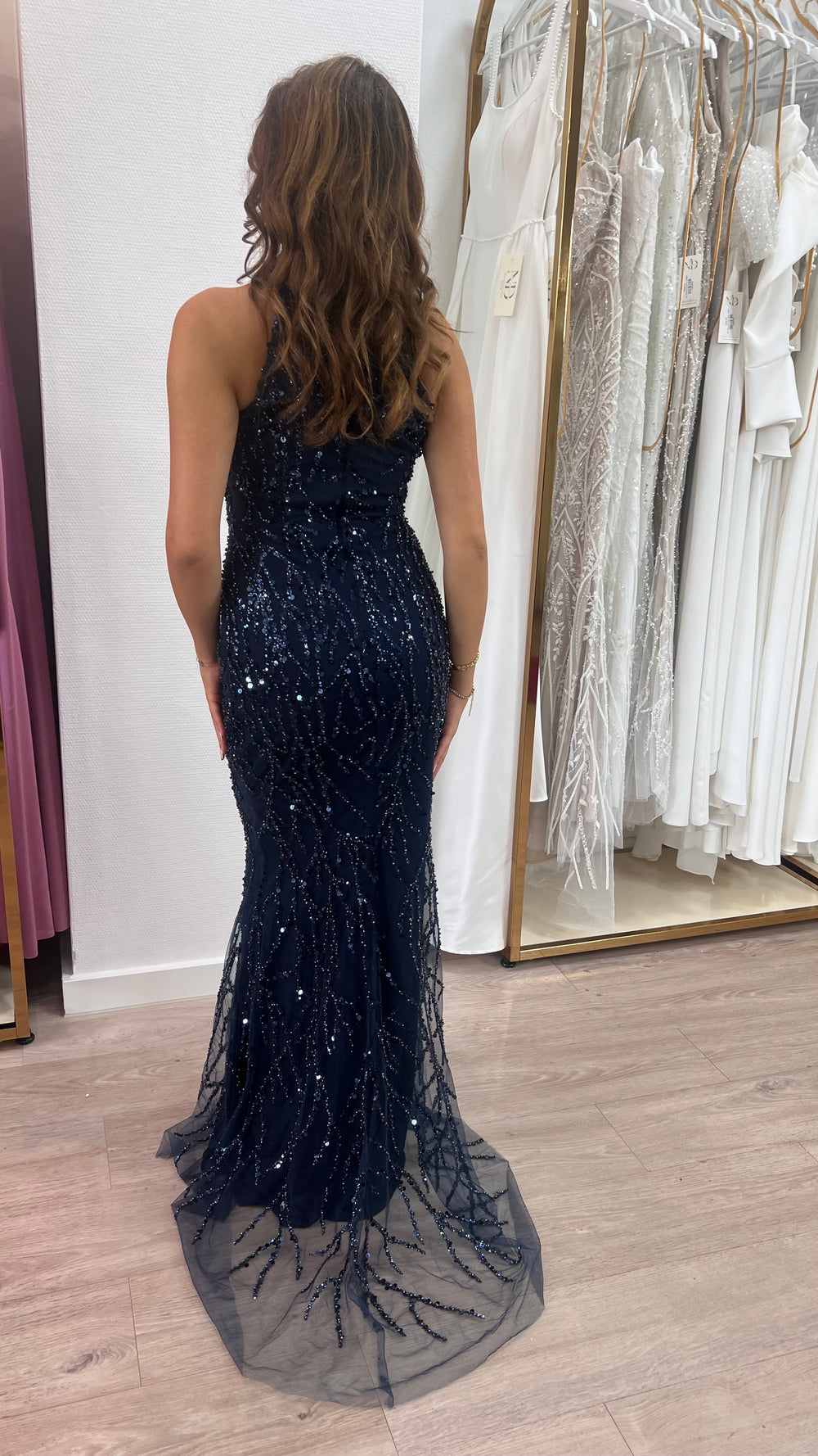 Dieses elegante dunkelblaue Abendkleid besticht durch hochwertige Stickereien und verleiht Ihnen einen romantischen Look. Perfekt für besondere Anlässe wie Hochzeiten oder einen Abend in der Oper. Das Kleid schmeichelt jeder Figur und lässt Sie strahlen. Ein wahrer Hingucker, der Ihnen Komplimente garantiert.