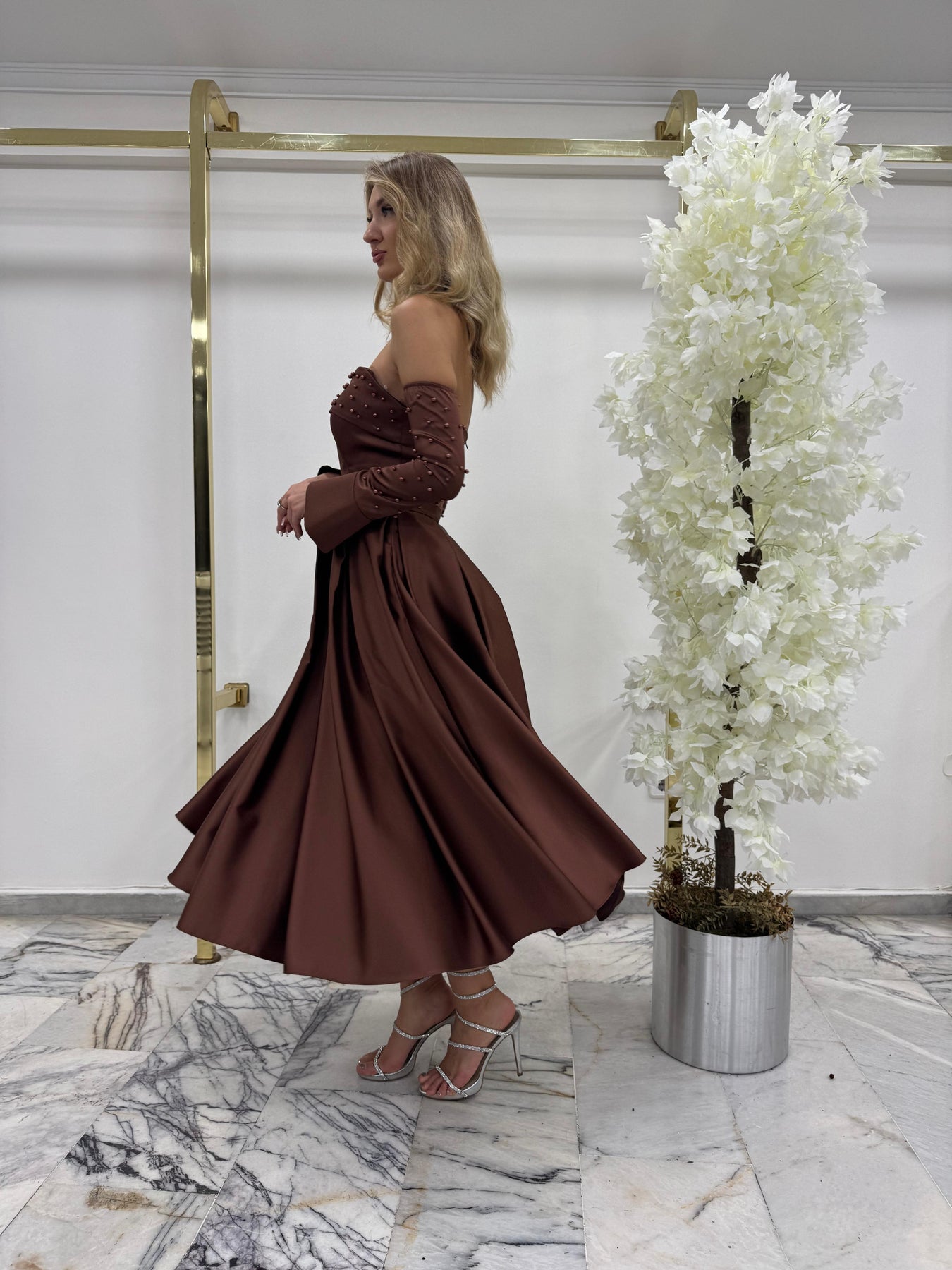 Dieses Silan Kleid ist ein elegantes midi Abendkleid, welches für jeden Anlass perfekt geeignet ist. Mit seinem zeitlosen Design und der hochwertigen Verarbeitung, verleiht es Ihnen einen stilvollen und edlen Look. Das Kleid ist bequem zu tragen und unterstreicht Ihre weiblichen Formen auf elegante Weise. Ein Must-Have für jede modische Frau.