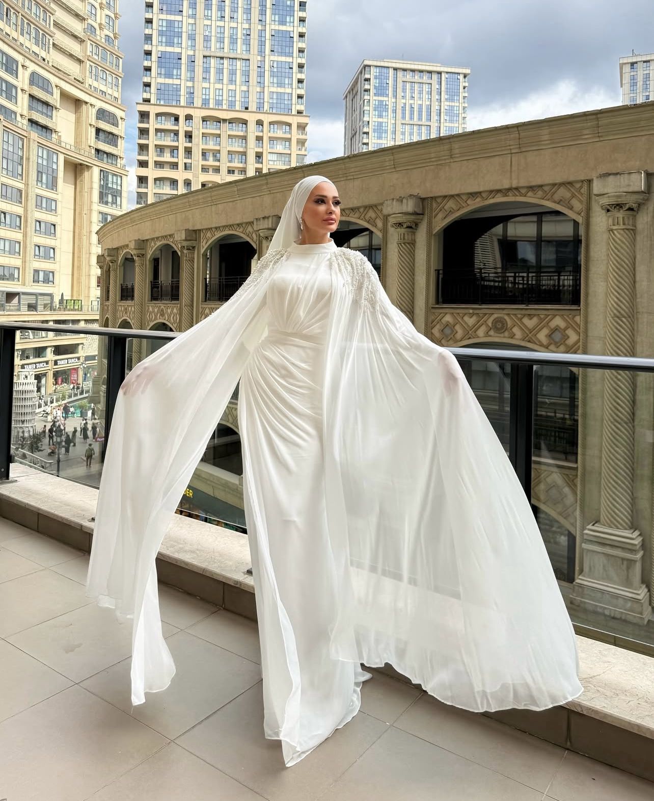 Dieses elegante weiße Abendkleid ist aus leichtem Chiffon gefertigt und perfekt für besondere Anlässe. Der luftige Stoff sorgt für ein angenehmes Tragegefühl und der Schnitt betont die weibliche Silhouette. Mit diesem Kleid werden Sie zum Blickfang bei jedem festlichen Event.